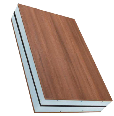 Presjek panela - obostrano ploča PVC ili AL - između kojih je zalijepljen ekstrudirani polistirol izolacija koja ovisi o debljini panela.