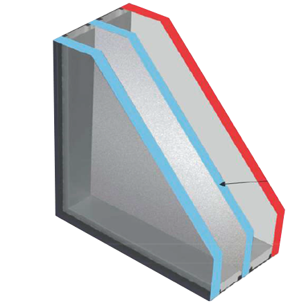 Standardna izrada troslojnog stakla - vanjsko staklo obostrano float (slika 2),a unutarnje sigurnosno VSG 33.1 staklo (slika 3). Srednje staklo u obje opcije ornament ili dekorativno staklo